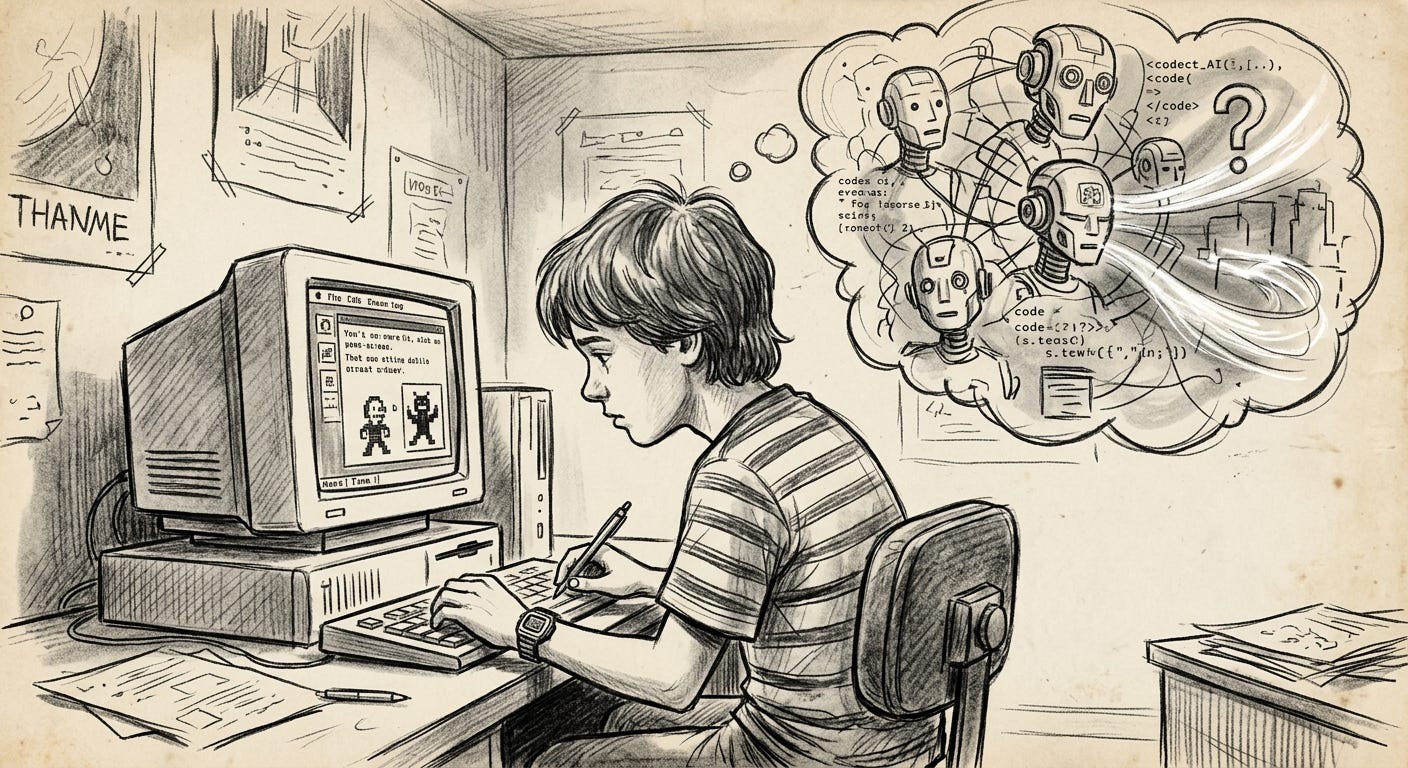 Thirty years later, I’m finally living some version of that dream. I have an AI agent that knows my projects, remembers my preferences1, helps me ship code, and occasionally writes a first draft that I tear apart and rebuild into something better. One guy and an LLM shipping things that would have taken a team. The ten-year-old would be thrilled.