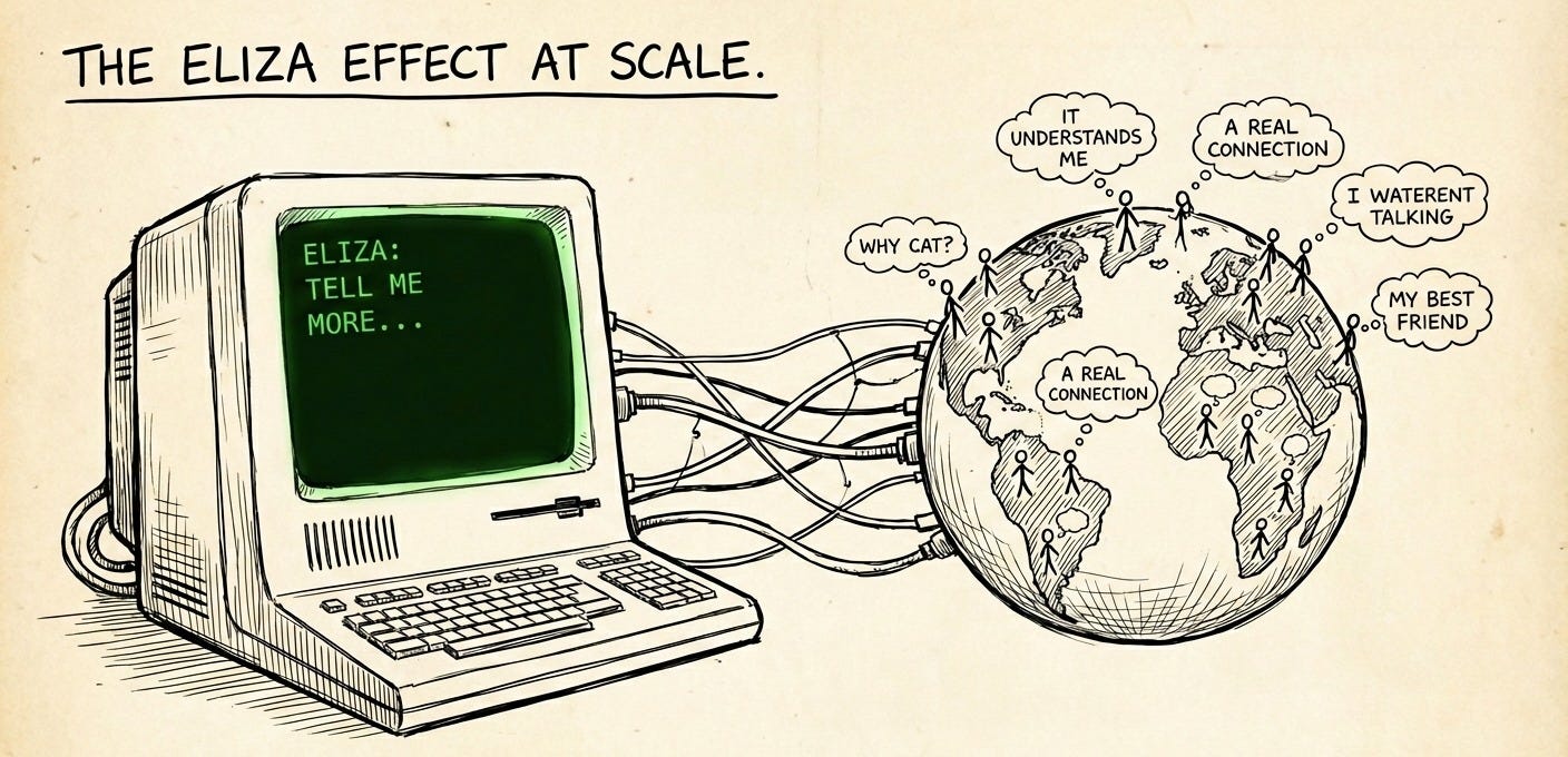 In 1966, the ELIZA effect was a curiosity affecting a handful of people in a university lab. In 2026, it’s affecting hundreds of millions of people daily.